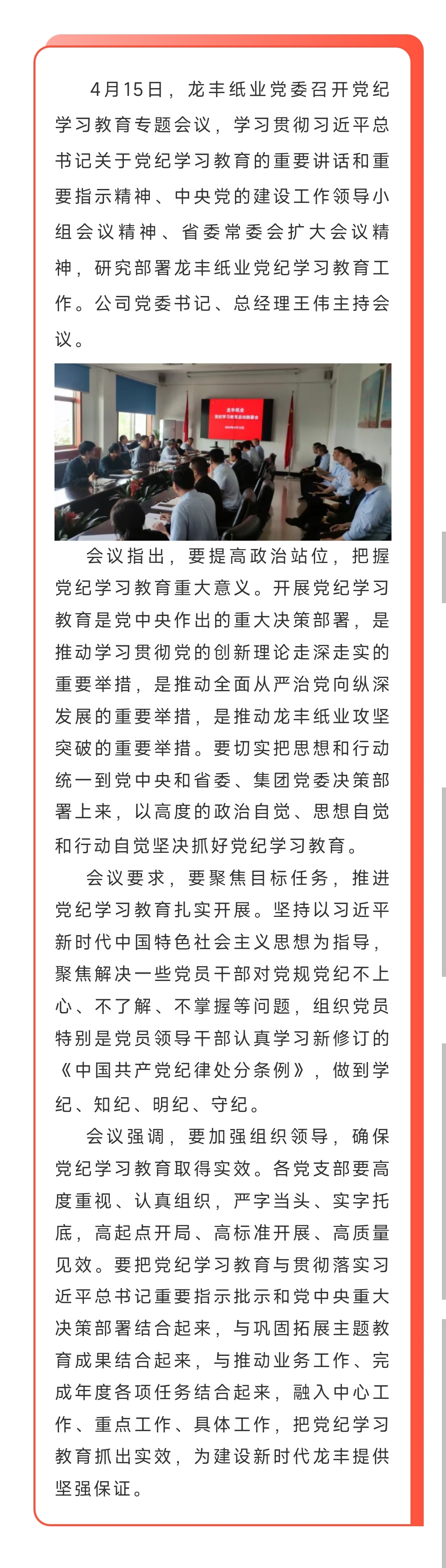 龍豐紙業(yè)召開黨紀(jì)學(xué)習(xí)教育專題會議